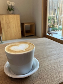 珍しくお酒でなくカフェオレ☕️ このコップがおしゃれやけど取っ手がなくて飲み方わからんくて苦戦しました(笑) わたしにはおしゃれはむずい☺️(笑) 今日も待ってます♪♪